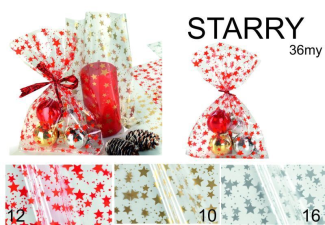 Dárkový sáček průhledný Starry 20x32cm 50ks červený