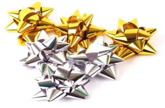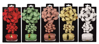 Rozeta 9cm matná mix 4 barvy (červená, zelená, zlatá, stříbrná) bal 24ks
