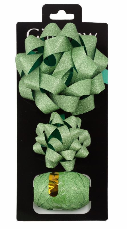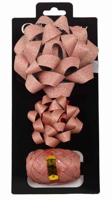 2 rozety a stuha klubíčko Glitrovaná sada k balení dárků