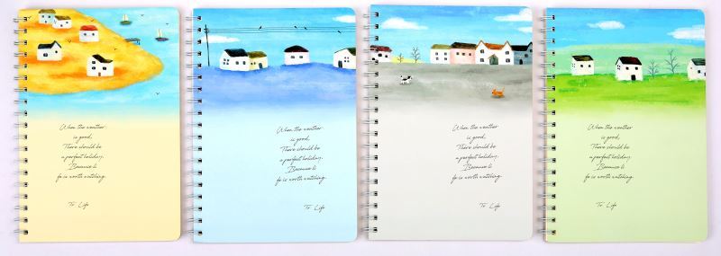 Poznámkový blok, linkovaný, boční spirála, pevné desky s potiskem, 80 listů, 80g, papír Chamonix. Rozměr 175x250mm. Mix 4 designů.