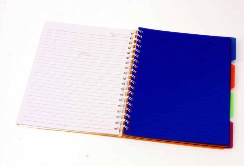 Linkovaný kroužkový blok, velikost B5 (trochu větší A5), s pevnými PP deskami a 4 plastovými barevnými rodružovači.
