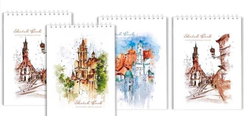 Blok skicák s horní spirálou, rozměr 260 x 330mm, 46 listů, 120g světle žlutý hlazený papír. 4 motivy.
