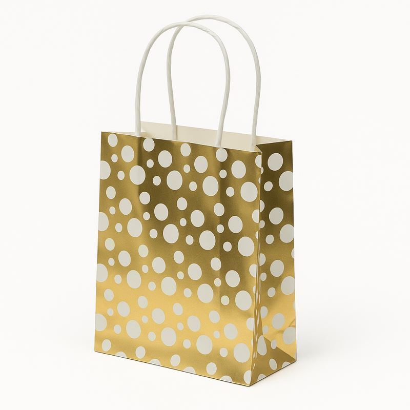 Velmi elegantní papírová dárková taška 15x17x7cm Hot Stamping Gold, se zlatým lesklým tiskem, papírové ucho.