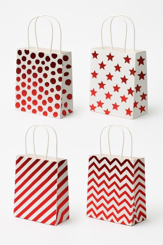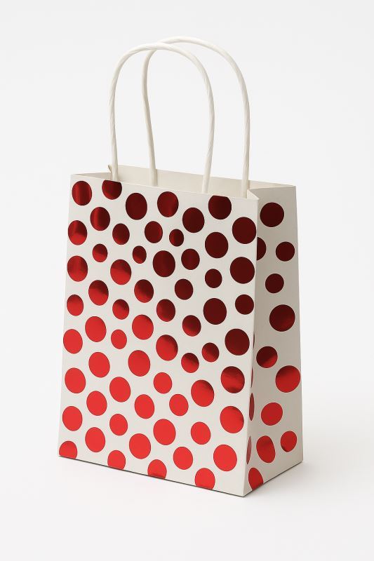 Luxusní papírová dárková taška 15x17x7cm Hot Stamping Red, červený metalický potisk. Velmi elegantní, papírové ucho.