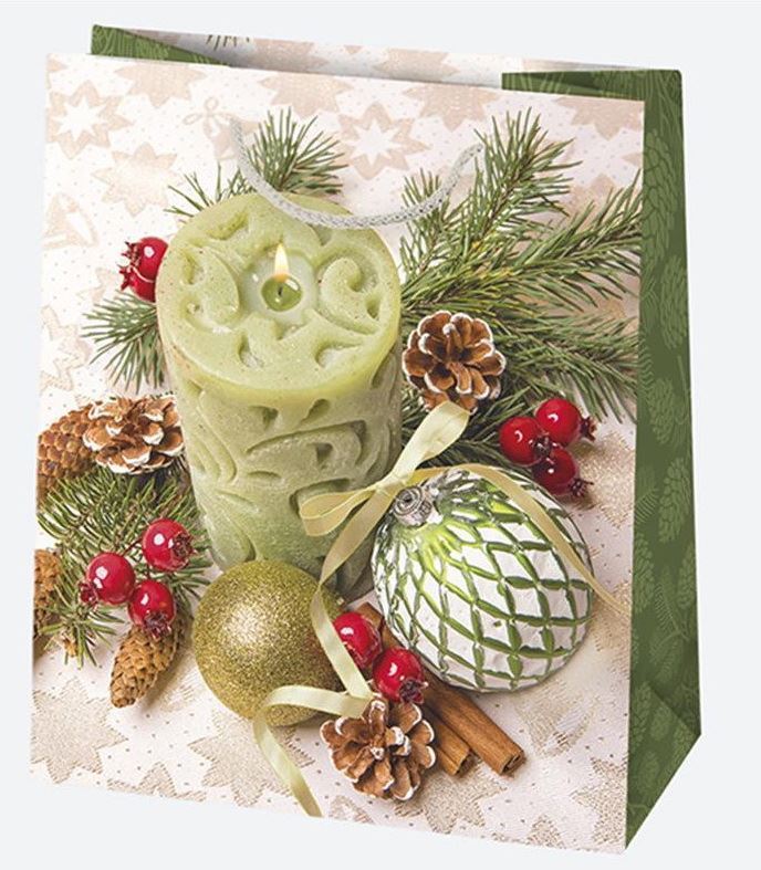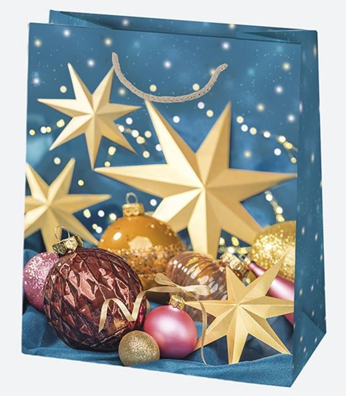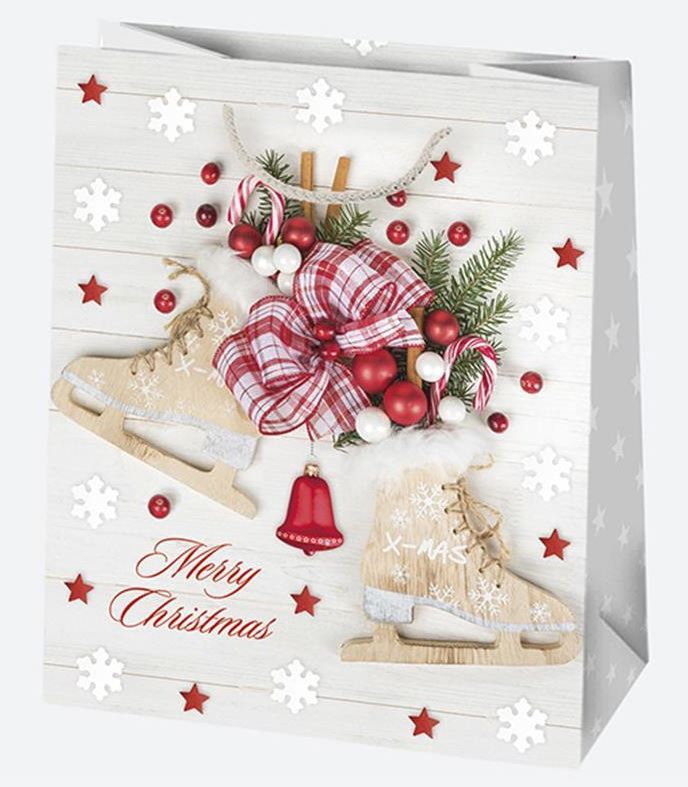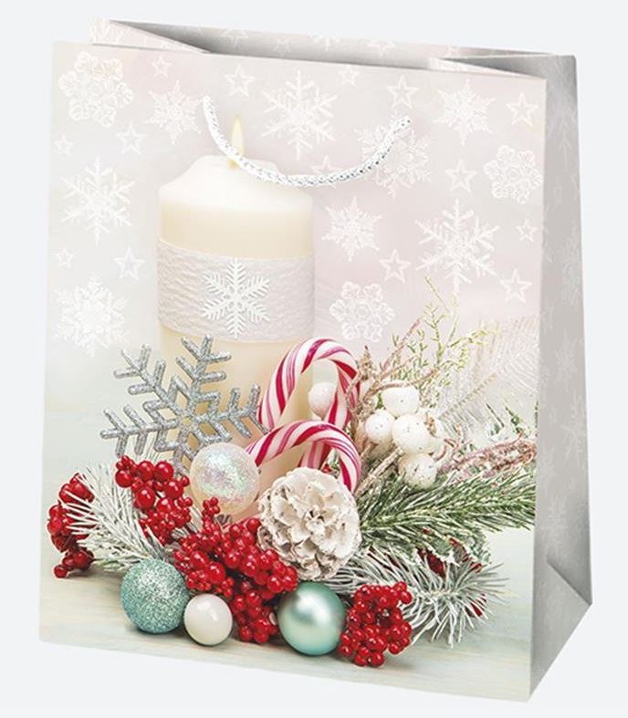 Dárková taška papírová s látkovými uchy s vánočními motivy. Bal 10ks. Cena za 1ks.