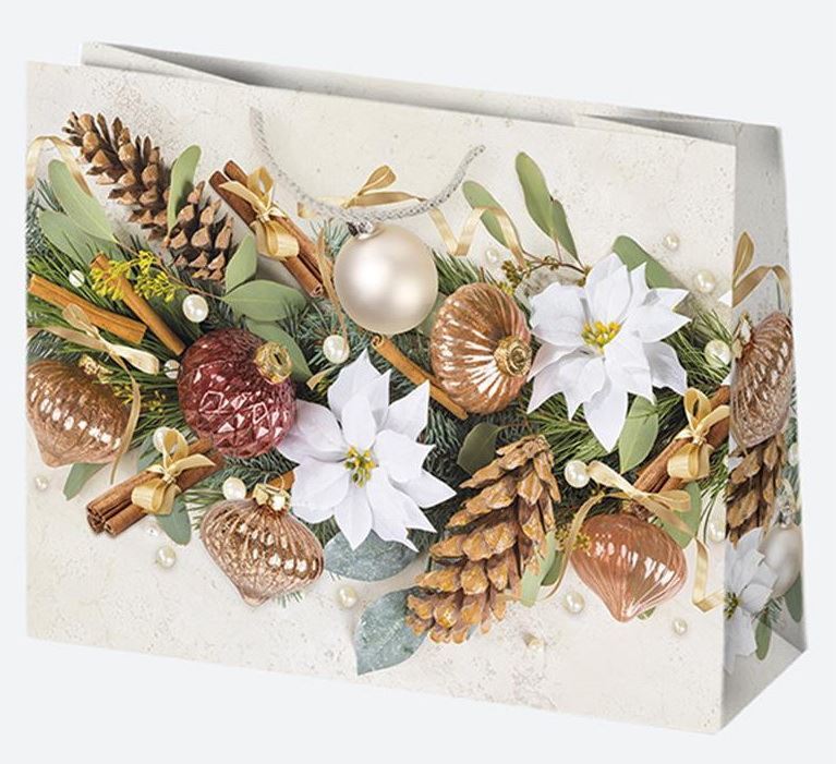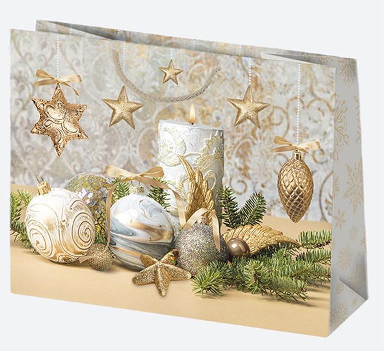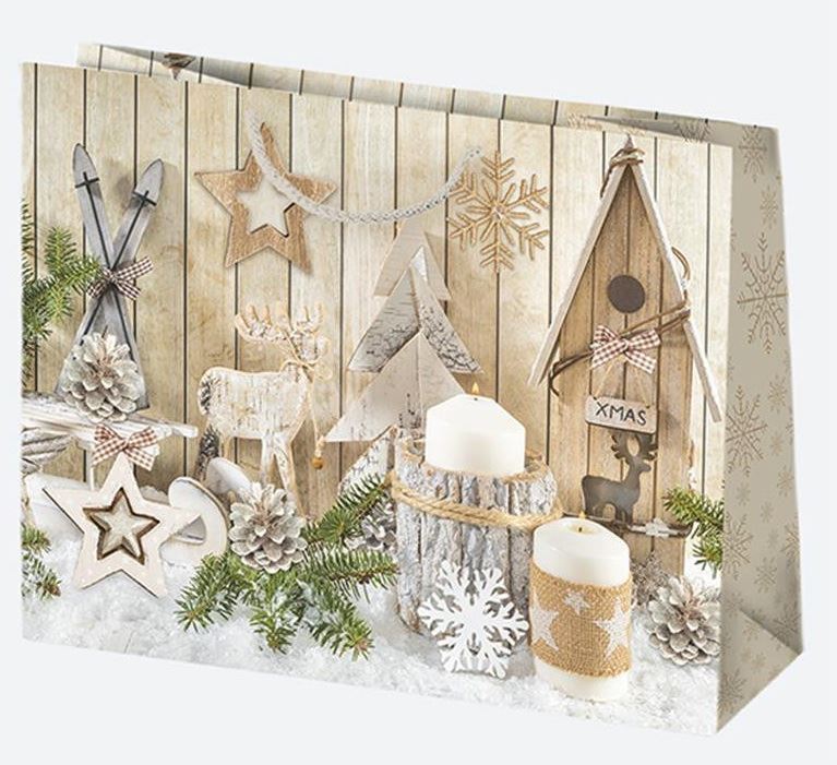 Dárková taška papírová s látkovými uchy s vánočními motivy. Bal Cena za 1ks.