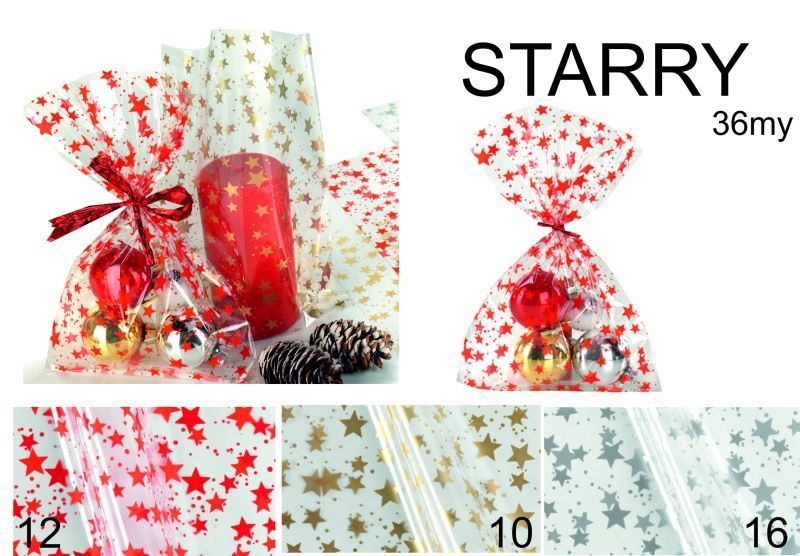 Dárkový sáček průhledný Starry 16x25cm 50ks červený