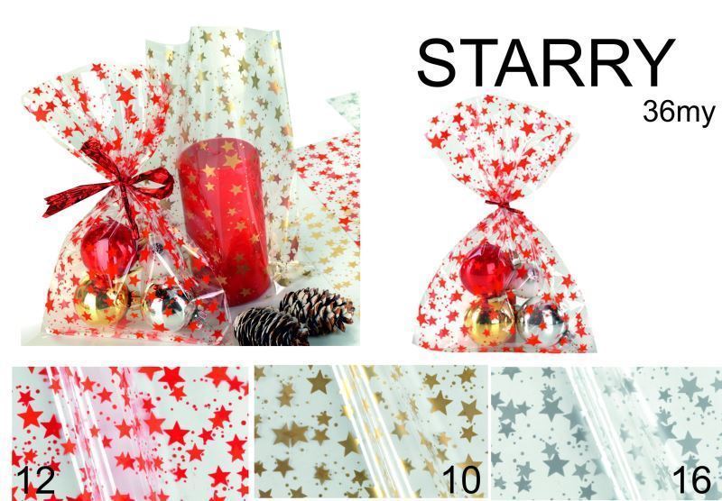 Dárkový sáček průhledný Starry 18x50cm 50ks stříbrný