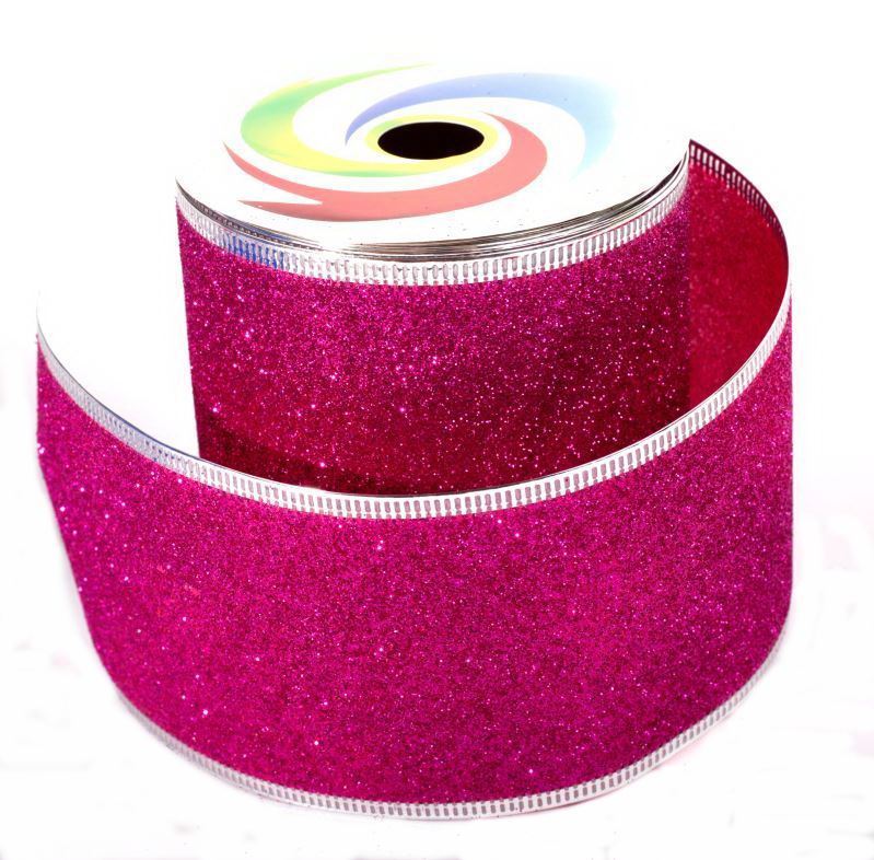 Široká glitrovaná stuha s tvarovacím drátkem po stranách, mix 6 barev, balení 12ks, cena za 1 návin