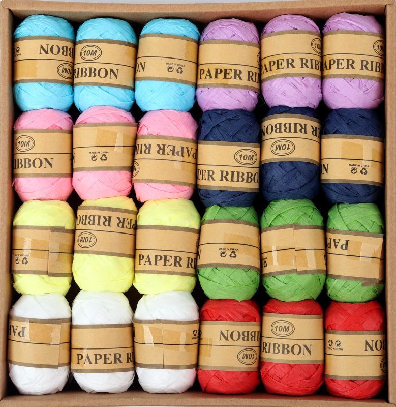 Dekorativní stuha papírová 10m v návinu klubíčko, mix 8 barev, balení box 24ks, cena za jedeno klubíčko. Vhodná pro balení dárků a jiné kreativní tvoření doma i ve škole.