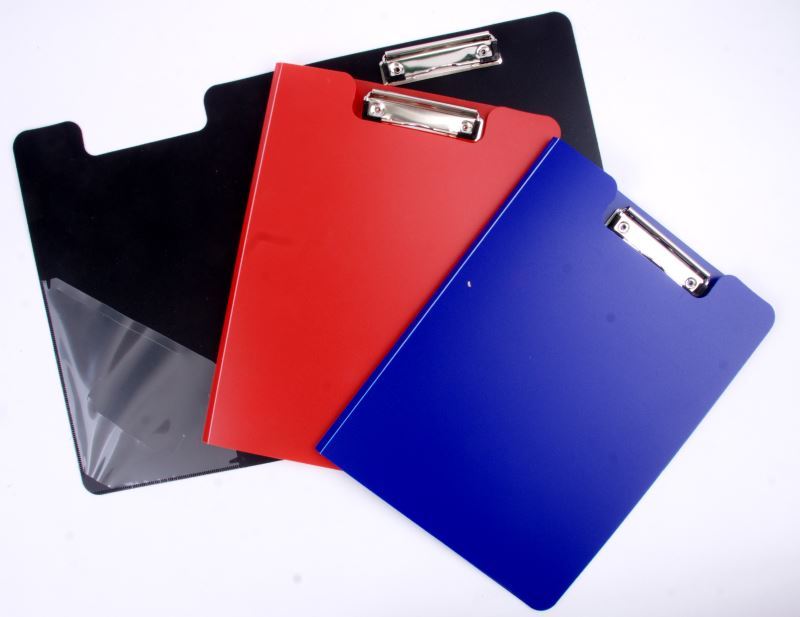 Pevná polypropylénová otevírecí podložka na psaní s klipem, a vnitřní kapsou.