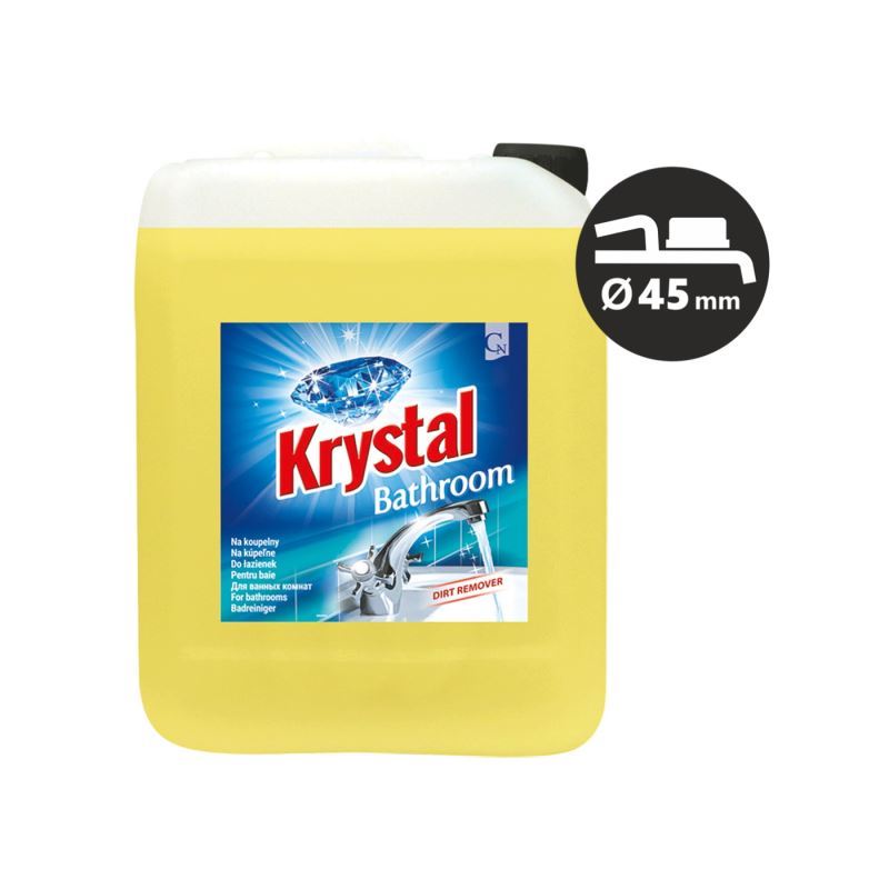 Prostředek vhodný na vodovodní baterie, vany, umyvadla, sprchové kouty (včetně zástěn), dlažbu a obklady. Čistič je silný proti vodnímu kameni a rzi, zanechává vysoký lesk. Je použitelný na všechny materiály odolné kyselinám. Vysoká koncentrace aktivních látek a jeho konzistence předurčuje Krystal na koupelny ke snadnému odstraňování větších nánosů vodního kamene, silnějších vrstev mechanických nečistot a k zajištění vysokého standardu lesku. Jeho receptura a kvalita vstupních surovin poskytuje pracovní komfort s mimořádně koncentrovaným prostředkem, který je příjemně parfémovaný vůní višně.