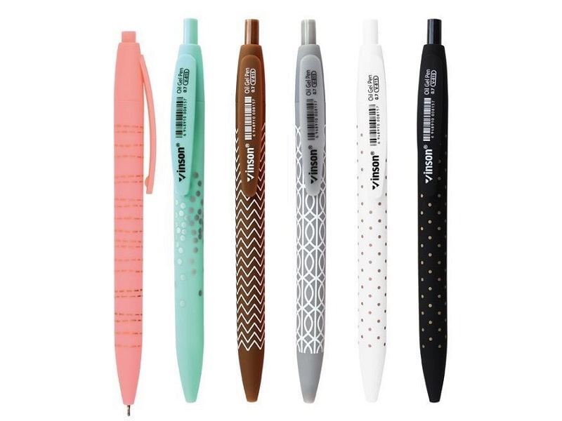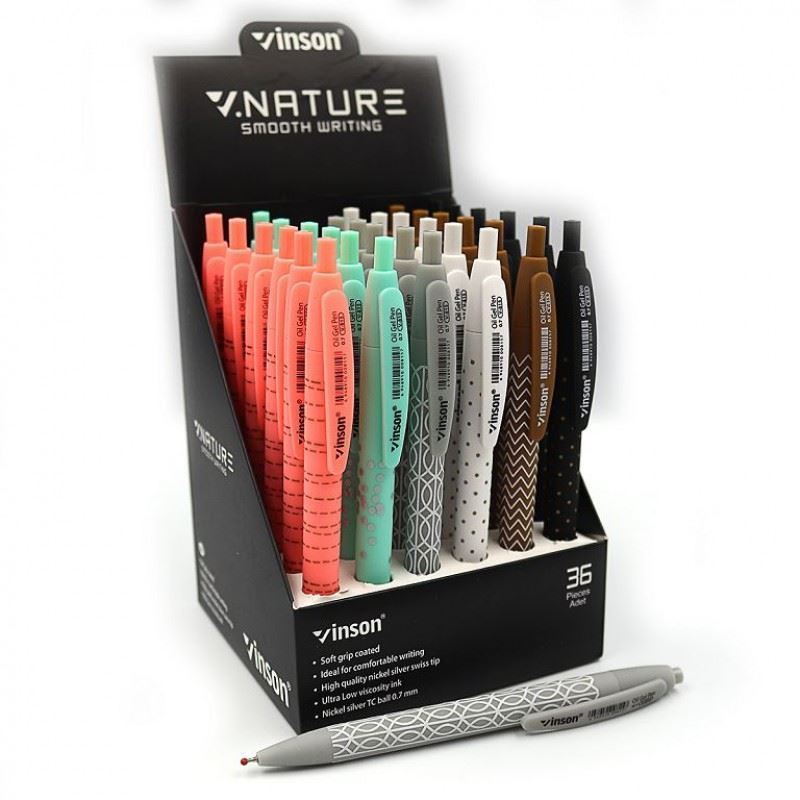 Plastová kuličkové psací propiska Vinson, vysoká kvalita, gelové olejové složení náplně (oil gel inks pen) mix barev. Balení 36 ks v papírové krabičce. Cena za 1 ks.