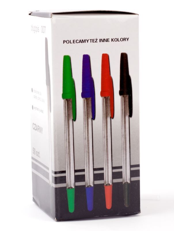 Plastové kuličkové pero jednorázové 0,7 mm červené. Balení 50 ks v papírové krabičce.
