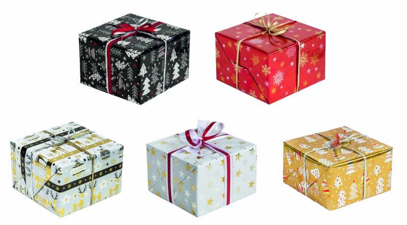 Luxusní dárkový balící papír METAL v roličkách 70x200cm, v balení 50ks mix 5 barev a designů, viz obrázek