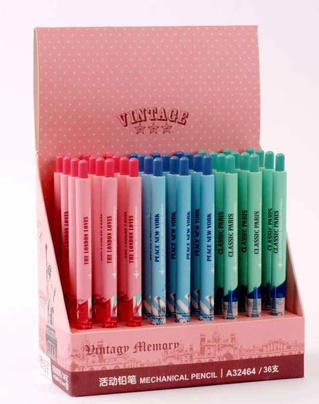 Plastová mikrotužka 0,5 mm HB, balení 36 ks v papírové blistrové krabičce. Mix barev a motivů.