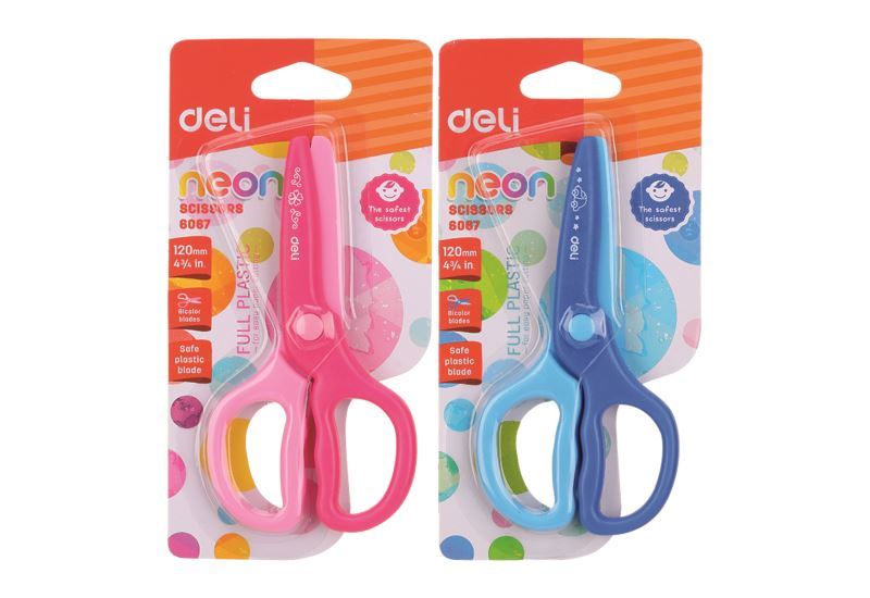 Plastové nůžky pro nejmenší děti – bezpečné a lehké, ideální pro první stříhání. Mix 2 barev (růžová, modrá). Cena uvedena za 1 ks.