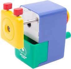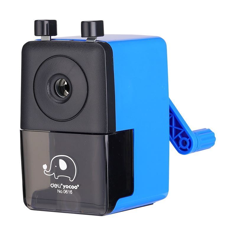 Stolní ořezávátko určené k ořezávání tužek a pastelek. Automatické sklíčidlo pro uchycení tužky, mechanický ořez. Bez úchytu. Modro-černé.