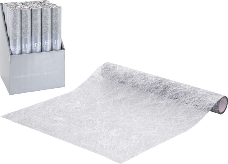 Okrasná organza v roli, rozměr 28cm x 250cm, barva stříbrná, cena za 1 kus.