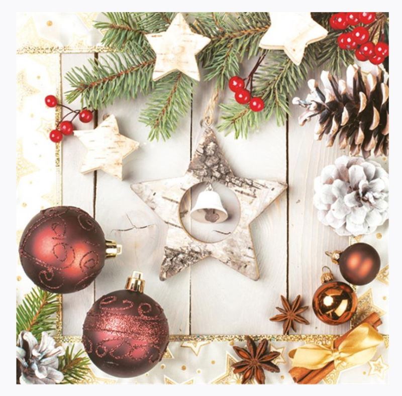Tradiční vánoční papírové ubrousky třívrstvé, o rozměru 33 × 33 cm, jsou ideální pro slavnostní stolování.