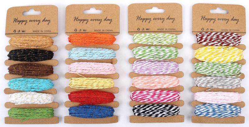 Papírový dekorační provázek, mix 6 barev na kartě, délka návinu jedné barvy 4metry, 0851 balení 12ks, cena za jeden kartu se 6 náviny. Mix barev a kombinací (bílo žíhaná, zlatem proplétané)