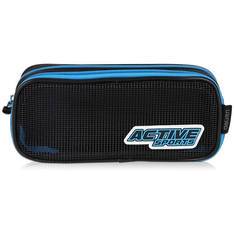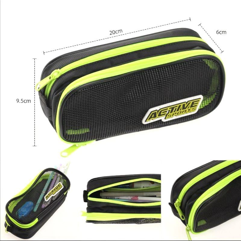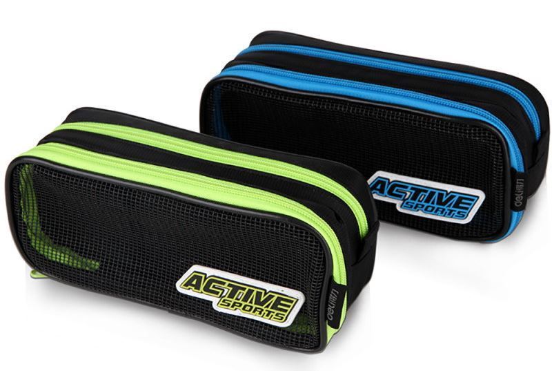 Školní textilní penál 215 x 95 x 60 mm, dvoupatrový se dvěma zipy, mix 2 barev, zelená, modrá.