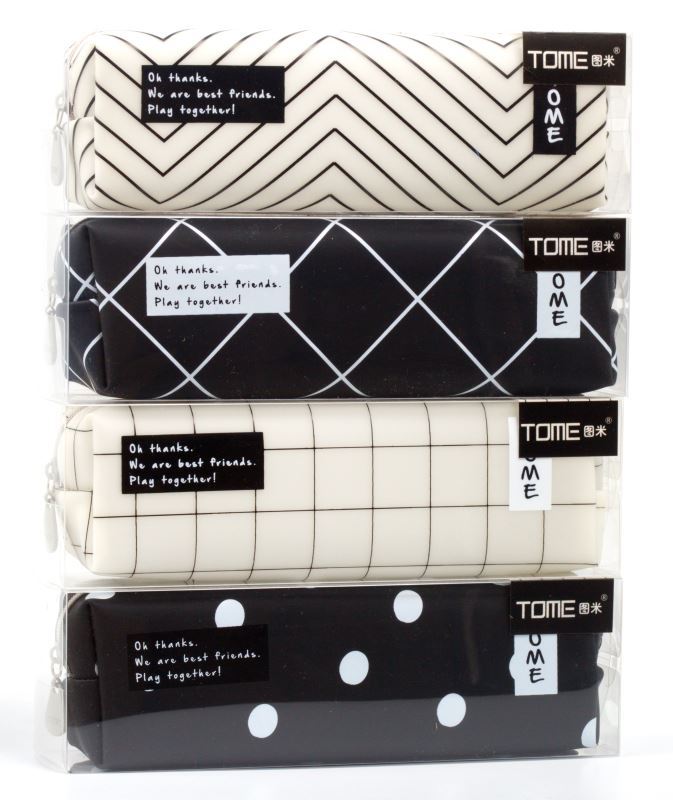 Penál, etue silikonová Exclusive, rozměr: 210x55x50mm, černý puntík, černé koso, bílé koso, bílé čtverce.