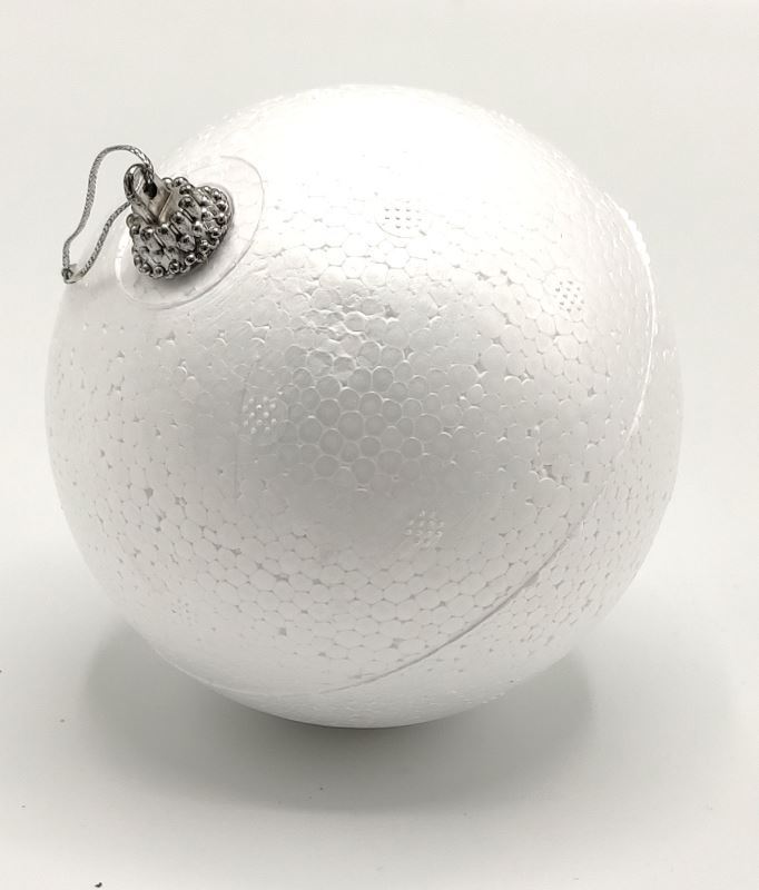 Polystyrenová koule se závěsem, vhodná na vánoční výrobu ozdob a jiné dekorativní tvoření. Balení 1ks, cena za celé balení.