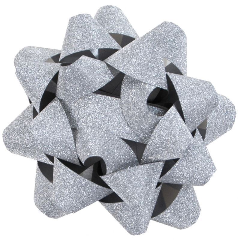 Krásná velká dárková rozeta samolepící, glitrovaná, ručně skládaná, každý kus balený samostatně na kartě, cena za 1 kus. Mix barev viz obrázek, zlatá, stříbrná.