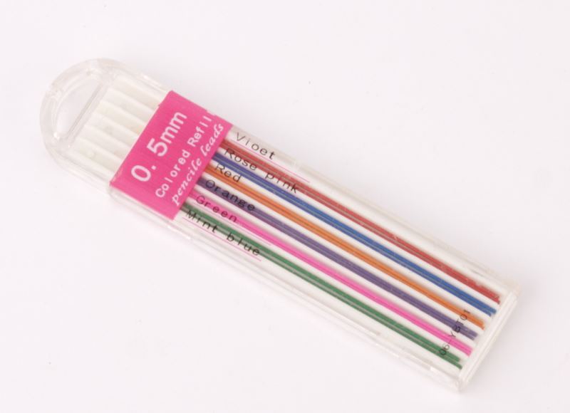 Tuha grafitová BAREVNÁ do mikrotužky. 0,5 HB, 12 ks tuh v balení. Stojánek 48 ks.